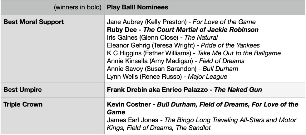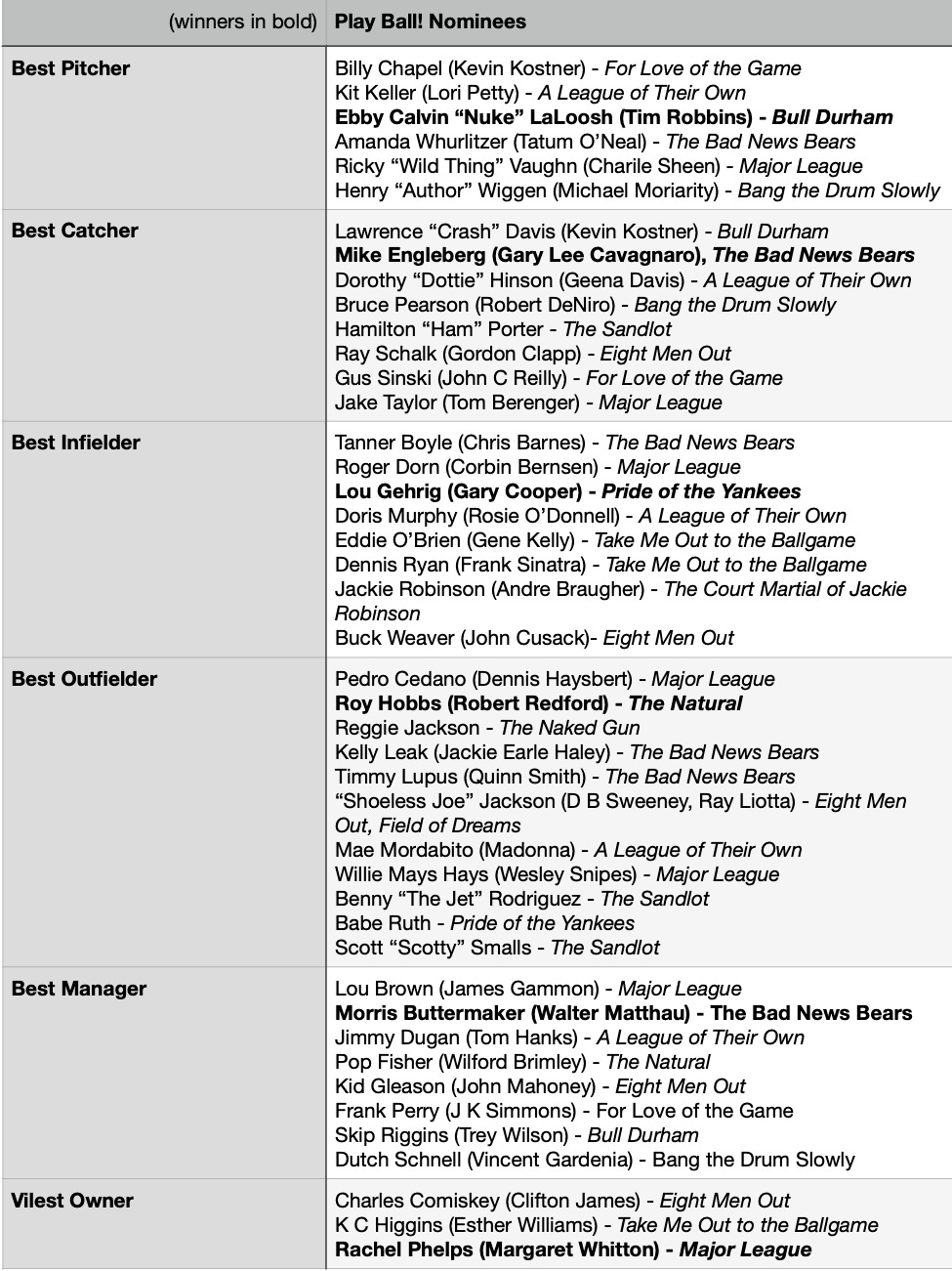 There may be no crying in baseball, but there’s plenty of crying from watching baseball movies. Correlation is not causation, but I find it interesting that I rarely have a dry eye at the end of most of these. (Including from some that have generated the tears from laughter).